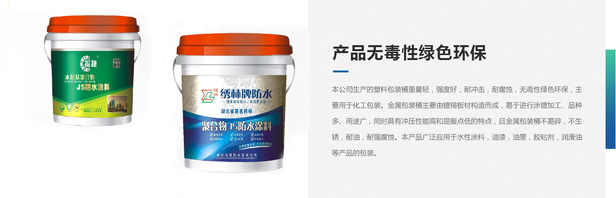 本公司生產的塑料包裝桶重量輕,強度好,耐沖擊,耐腐蝕,無毒性綠色環保,主要用于化工包裝。金屬包裝桶主要由鍍錫板材構造而成,易于進行涂鍍加工、品種多、用途廣,同時具有沖壓性能高和屈服點低的特點,且金屬包裝桶不易碎,不生銹,耐油,耐強腐蝕。本產品廣泛應用于水性涂料,油漆,油墨,膠粘劑,潤滑油等產品的包裝。